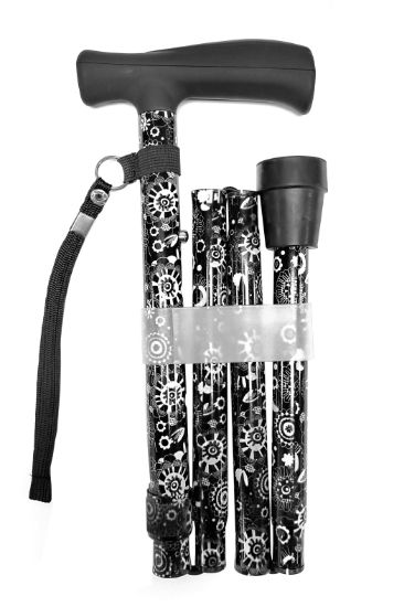 Pattern Black Folding Walking Stick Height Adjustable – A height-adjustable folding walking stick with a stylish floral pattern, providing both practicality and aesthetic appeal.