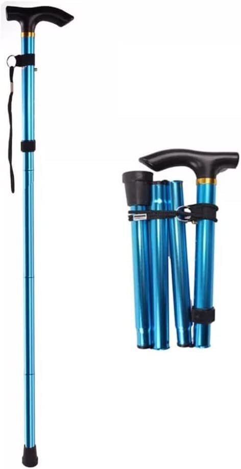 Blue Adjustable and Folding Walking Sticks – Stylish blue walking sticks with adjustable height and a foldable design for easy storage.